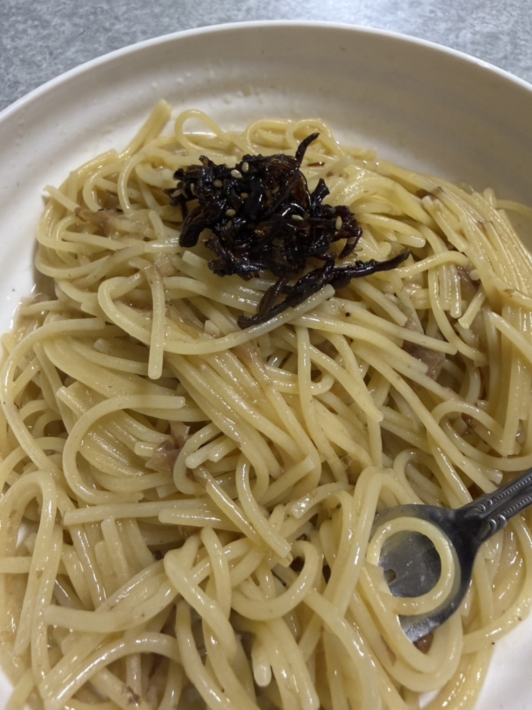 鰹節と梅昆布茶で作るワンパンパスタ(拓さん)